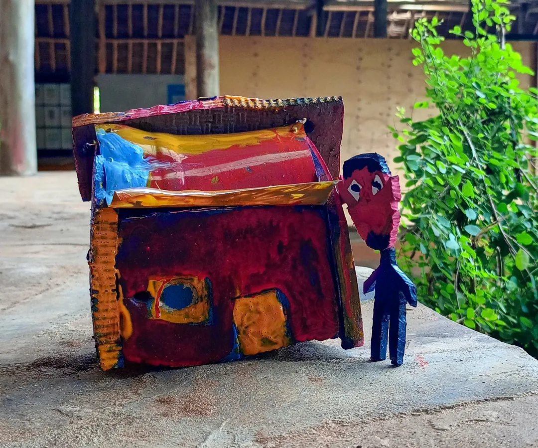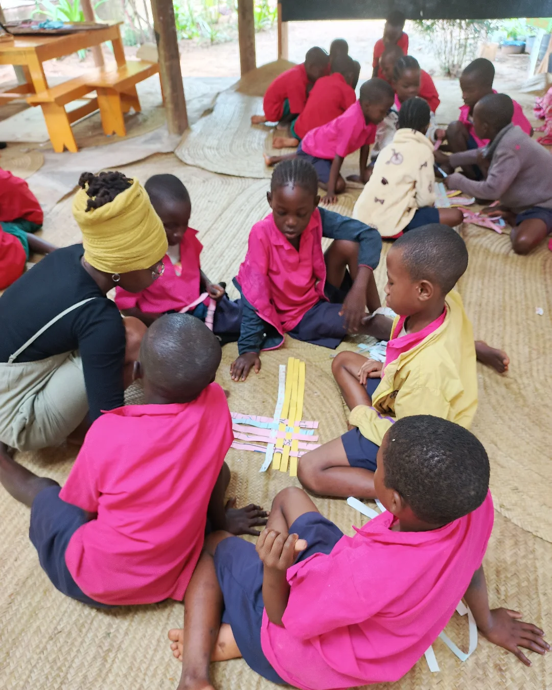 What do bottle caps, old sandals, plastic bottles, and rusty cans have in common? Well — if you ask the incredible Nzilani, they’re not trash. They’re treasures waiting to be transformed! Nzilani, a creative powerhouse and upcycling artist from Nairobi, spent two wonderful weeks with us at Eco Moyo, leading hands-on workshops that turned our learners into young eco-visionaries. Together, they cut, glued, painted, imagined — and reimagined — what “waste” could become. Instead of throwing things away, the children reimagined them. Broken sandals and rusty cans became building materials for miniature houses. Hundreds of plastic bottle caps were sorted by color and pattern, then arranged into vibrant artworks and mosaics. Together, the students even created a map of Eco Moyo out of recycled pieces — a playful, yet powerful reminder that our school is built on creativity and care for the environment.